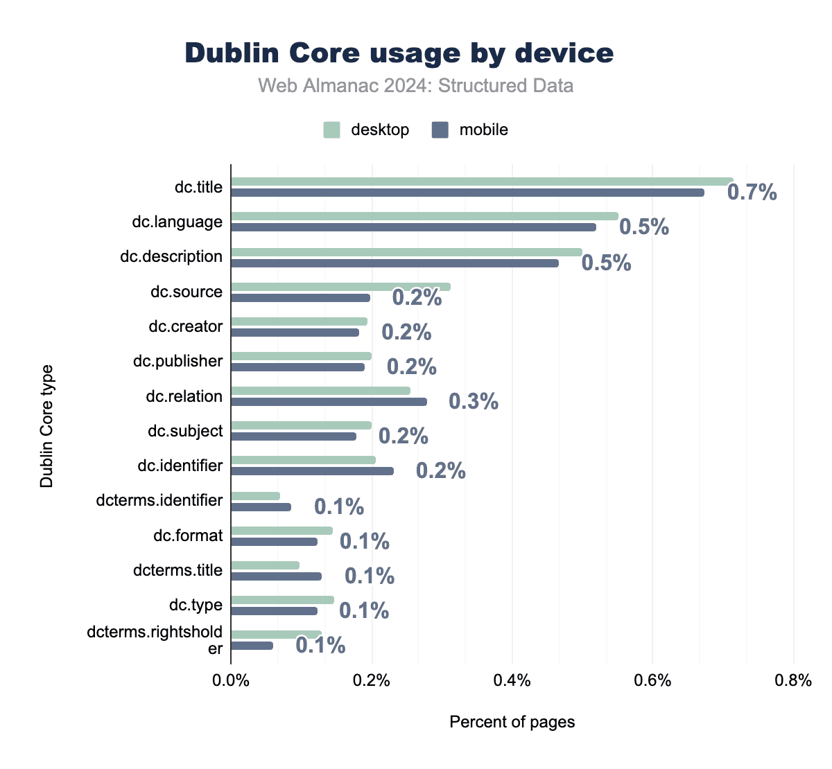 Figure 3.25. Microformats2 usage by device in 2024, comparing desktop and mobile implementations.