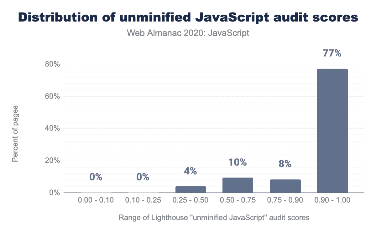 In totaal is slechts 4,5% van de geregistreerde JavaScript-verzoeken niet geminimaliseerd.